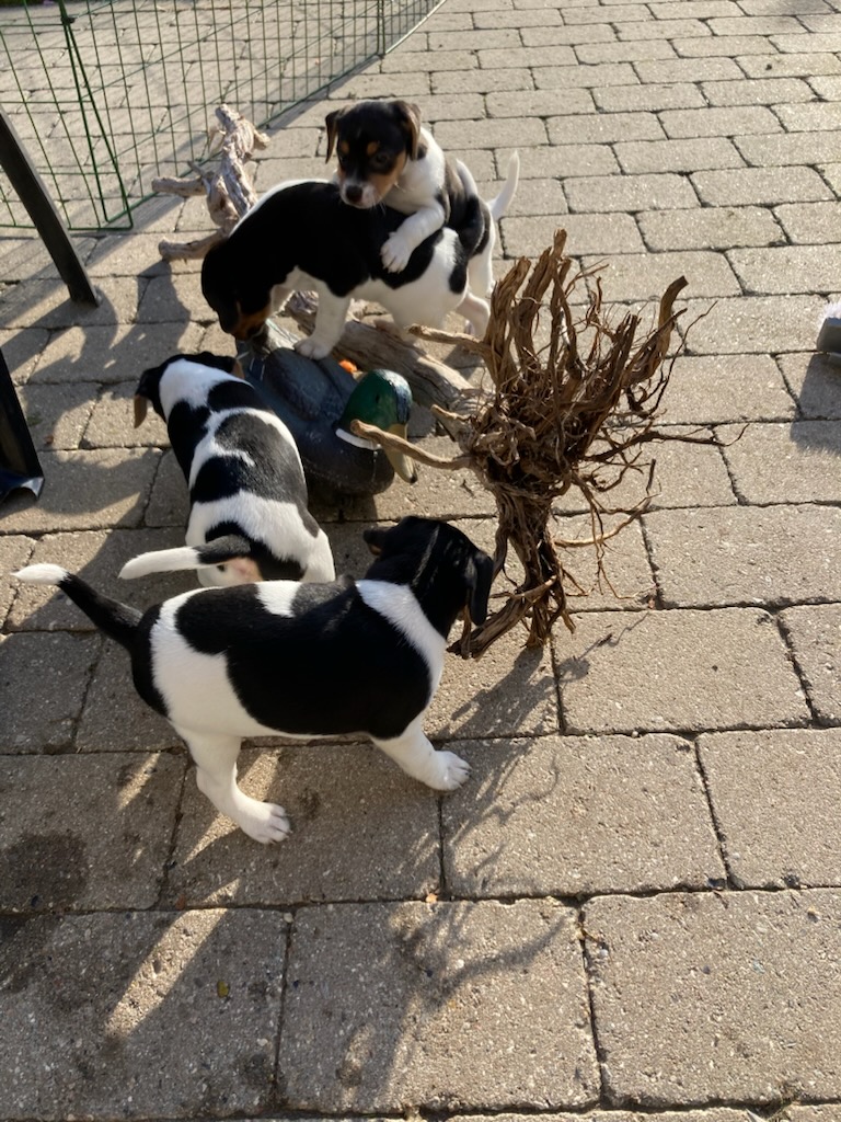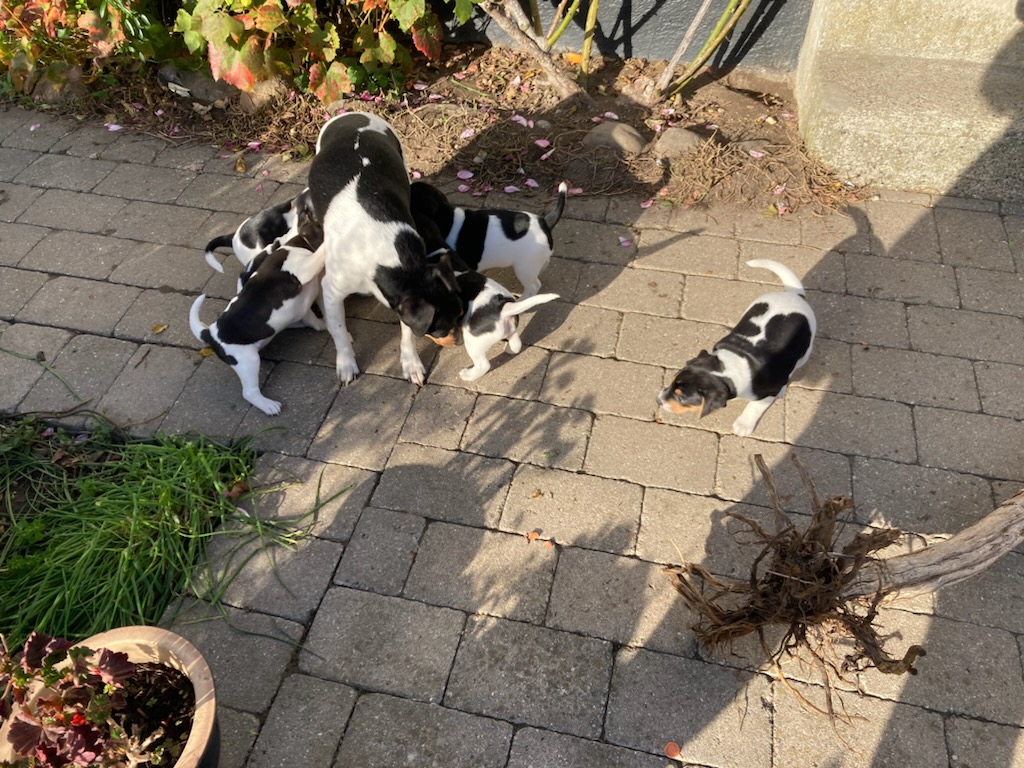 De 2 dejlige hanner Otto og Ludvig er endnu ikke reserveret. Hvalpene løber rundt i haven og graver sammen med de voksne hunde. De er meget utilfredse med at være i indhegning, når de er vågne. Kattene leger med hvalpene og de har fanget en mus til dem.